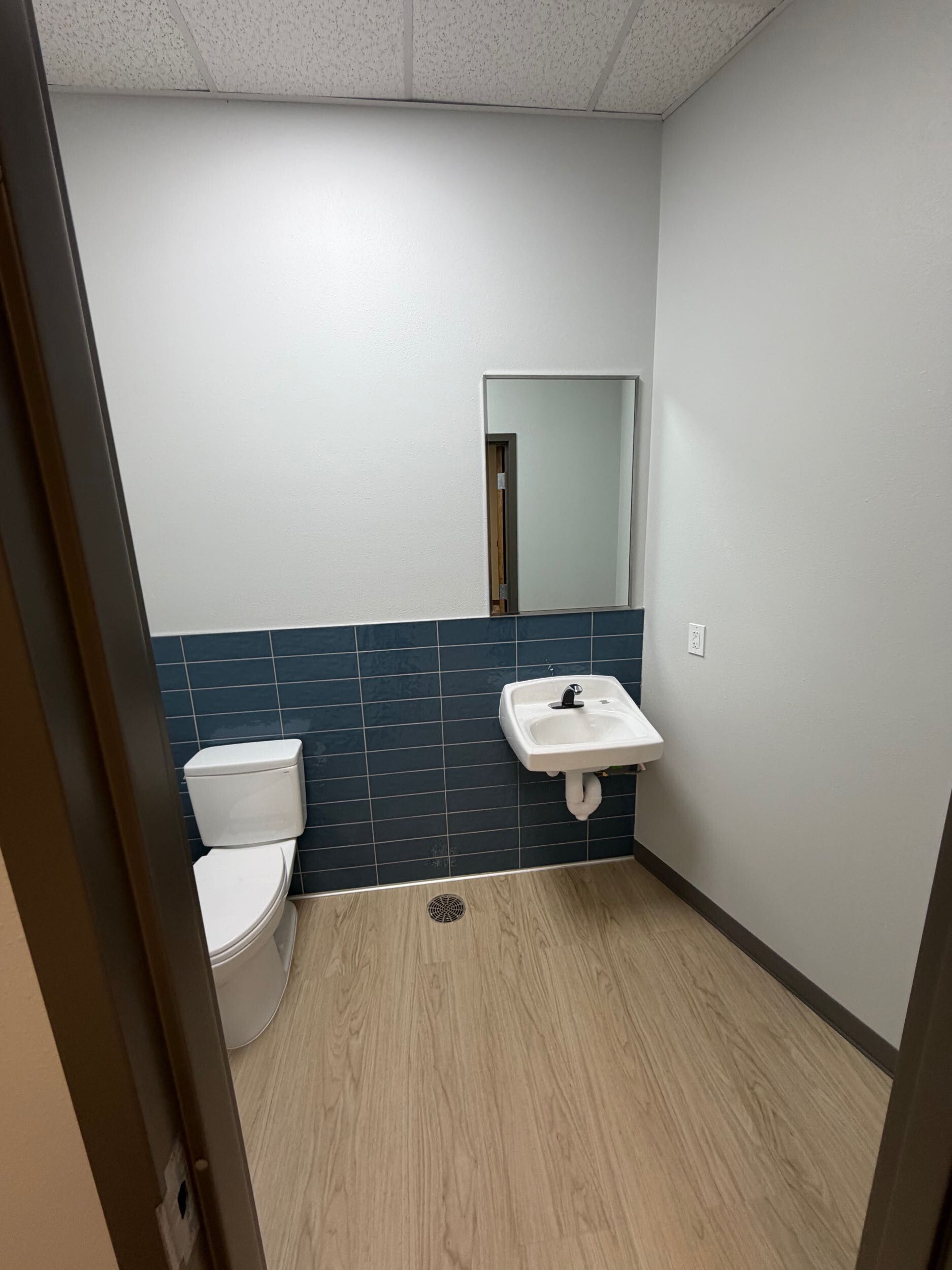 Interior office renovations including office space, breakroom, bathroom, and conference room.